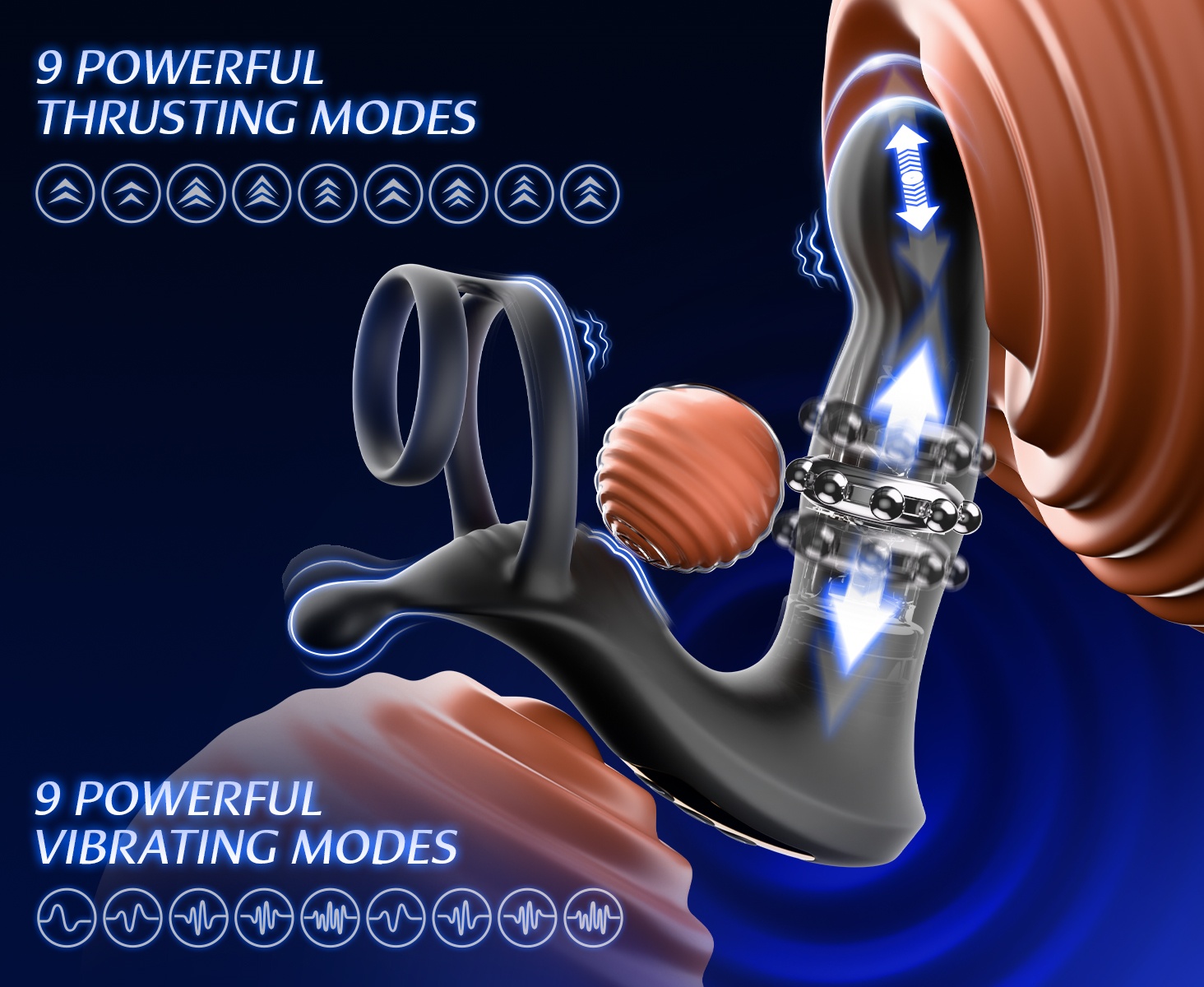Powerful motor, 9 thrusting modes + 9 vibration modes - The powerful motor ensures you won't be able to stop until your legs are weak. The 9 vibration frequencies deliver astonishing intensity, a stark contrast to its compact size, resonating with your core and transmitting the pleasure of a prostate orgasm throughout your entire body. Wave after wave of pleasure will leave you moaning uncontrollably.